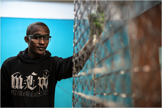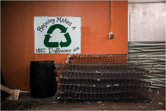 Riqie Wainaina works in the Workforce Development Program at UTEC, spending most of his days in the mattress recycling crew. He travels to a warehouse in Lawrence, MA each day with the rest of the crew, under the supervision of two UTEC staff. There they dismantle and prepare discarded mattresses for recycling, part of UTEC’s push for sustainability in social, economic, and environmental practices. He has been at UTEC for several months, and has quickly gone from being homeless and unemployed to being a leader within the center. Here are a few glimpses of his current work, with excerpts of his story as told in his own words: